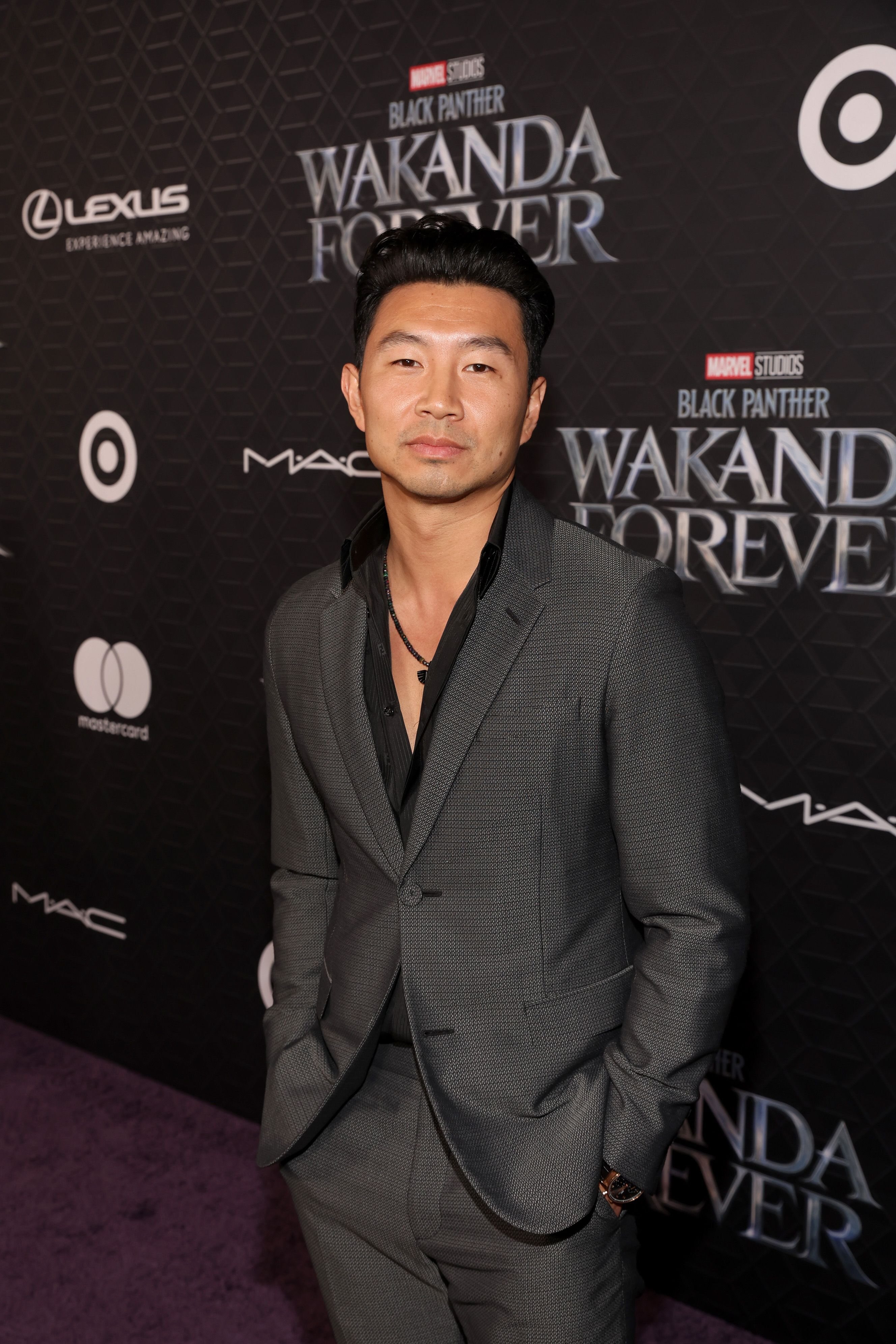 Simu Liu, who plays Shang-Chi in the MCU, attends the 'Black Panther: Wakanda Forever' premiere in Los Angeles. Disney